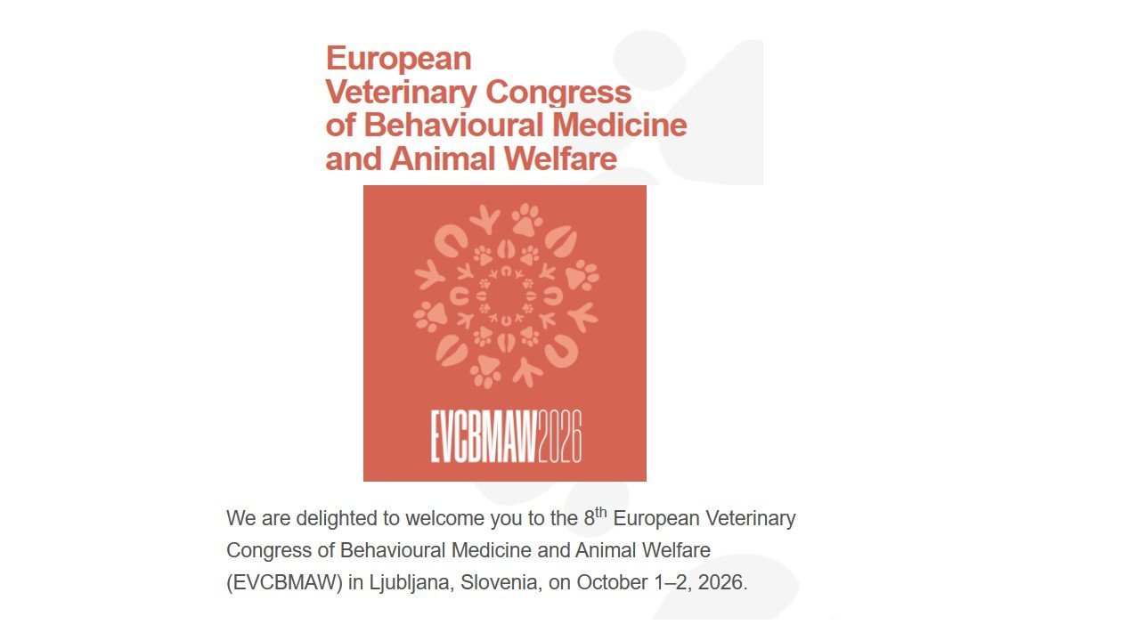 Wij zijn verheugd het 8e Europees Congres voor Veterinaire Gedragsgeneeskunde en Dierenwelzijn (EVCBMAW) aan te kondigen, dat zal plaatsvinden op 1 en 2 oktober 2026 in Ljubljana, Slovenië.
